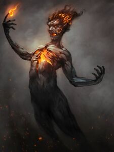 Efreeti are a malevolent type of genie native to many Dungeons & Dragons roleplaying media, they are envisioned as inhabitants of the fire elemental plane and can be confused with Devils due to both their appearance and Lawful Evil society.