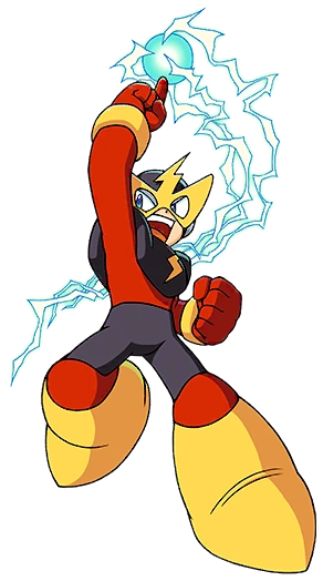 Originally built by Dr. Light to control the voltage in power plants, he was than reprogrammed by Dr. Wily to help him rule the world. He is hailed as one of Dr. Light's greatest creations. Elec Man tends to be arrogant and egotistical, but is very responsible otherwise. His signature weapon is the Thunder Beam, a fast bolt that goes in different directions, and deals significant damage.