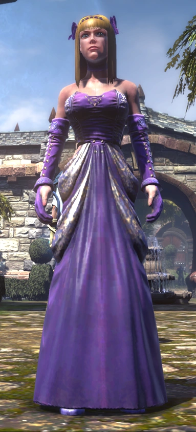 The Mayor of Bowerstone, Lady Grey first appears briefly when the Hero of Oakvale visits Bowerstone South for the first time. Later, after the Hero of Oakvale beats the Arena quest, he meets Lady Grey, who is very impressed with his feats, much to the ire of her ex-suitor Thunder. She then invites the Hero to visit her at her manor in Bowerstone North. When the Hero visits Bowerstone North, Lady Grey expresses her desire to marry him, agreeing to do so if he can do three heroic things for her: give her a gift from town (specifically, a black rose), find her missing necklace (which is located in Oakvale), and defeat Thunder in combat.