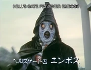Hell's Gate Prisoner Emboss (ヘルズゲート囚・エンボス Heruzu Gēto Shū Enbosu) is a minor antagonist from Mirai Sentai Timeranger, first appeared as a main antagonist of the episode "Case File 39: A Lie Soaked in Rain". He is a deranged prisoner who is extremely dangerous and known for creating spreading a biological virus that wiped out hundreds of innocents in the 30th century.