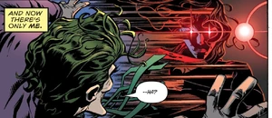 Suddenly, Lois was blown back by an explosion cause by the arrival of the Eradicator who was wailing about how he was too late on placing Superman's body into a Kryptonian life matrix needed to revive him. The Eradicator had retained some of the matrixes energy inside himself and had to expel into someone else. Lois offers to take the power for herself so she can create a world that she felt deserved Superman and bring an end to villainy. Despite the risks, the Eradicator transfers the energy to Lois Lane which transforms her into the new Eradicator.