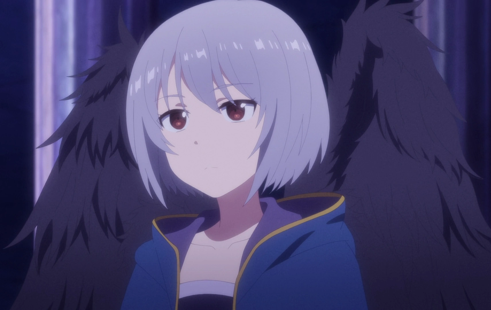 Once she revealed her true personality, however, Eri discarded and broke her glasses. revealing that she didn't actually need them. Her soft, kind expression was replaced with a sinister, evil smirk. After obtaining the power of an apostle, Eri's hair turned silvery grey (similar to Noint's) and she grew a set of black fallen angelic wings. After receiving her enhanced powers, she traded her staff for a set of greatswords.