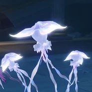Evey's appearance is quite simple: it looks like a white jellyfish; its head resembling the flowers on March 7th's clothing. Evey's color changes to red during the Trailblaze Quest Back to Earth in Evernight and during battle. All "Eveys" appear to be the same size in the story, but vary in size during battle.