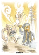 At some point, Fenwick came into contact with Morro and rewrote his destiny so he would be able to escape from the Cursed Realm and unleash its living manifestation, the Preeminent to curse the Sixteen Realms. When the ninja arrived in Cloud Kingdom to find the Sword of Sanctuary which would lead them to the Tomb of the First Spinjitzu Master, Fenwick greeted them and appeared as friendly, guiding them across Cloud Kingdom and explaining the concept of the Sixteen Realms and the Realm Crystal, the artifact Morro was looking for. He then locked the ninja in a room with his pet Nimbus, presumably to be eaten, but they were able to escape. A young monk named Nobu soon realised the ninja were in danger and rushed to Fenwick, but he revealed his true colors by showing he was allied with Morro, who he let into Cloud Kingdom along with Soul Archer and Bansha. He then showed the ghosts the Sword of Sanctuary, but the ninja were able to discover Fenwick's treachery in time. Fenwick later watched as Nimbus tried to prevent the ninja from escaping Cloud Kingdom but Nobu rewrote his destiny, making Nimbus chase after him instead.