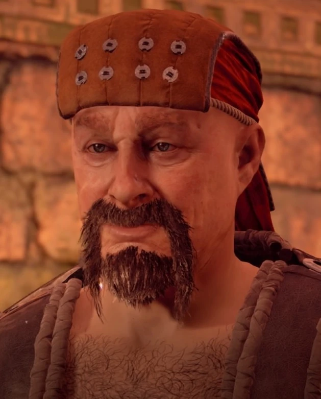 Having no qualms in using bribery, trickery, and even murder to get anything valuable from anyone to sell for shards, Fernund's plans would be later foiled by Aloy, where his attempt to sell her spear through the same means later failed, forcing him to run away after he was threatened by her.