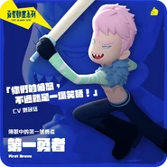 The First Brave (第一勇者) is a minor antagonist of Taiwanese animated series Brave Animated Series, based on the comic Brave Series (勇者系列) by Yellow Book. First Brave is an empathy-free massacre of the brave, but it was this event that set the stage for the awakening of the powerful to be given a new title—Brave, and this is the origin of the country's name, "Brave Kingdom".