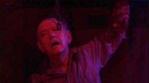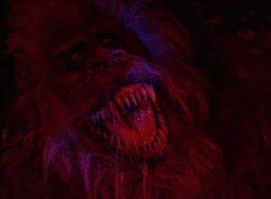 Charlie Gereson being bitten on the neck by Fluffy while trying to escape from the beast's clutches.