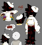 Folly is a cryptic, mysterious being who feeds on the fear, anxiety and anger of others. While calm, she occasionally violently threatens the other NPCs and players in various ways, mainly whenever she gets particularly annoyed at something like Wallter bringing up her attire, which hints to an unstable side of her. She's shown to like poetry, as she reads it and, according to Wallter, writes it herself. She is also shown to be distrusting towards others, as when the players use the Petal Cone on her, she states that kindness has taught her to never trust another ever again. At times, she can be needlessly cruel yet brutally honest, as she tells Pilby not to lie to themself when they believe that their mother might still be alive, and calls out Mannequin_Mark for ultimately being just as trapped as the rest of the mannequins in the hivemind that he isn't a part of for some unknown reason, regardless of how different he is from them.