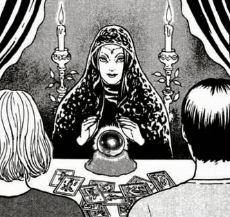 - The Fortune Teller herself can be compared with Junji Ito's another villain, Tomie, who is depicted as a beautiful woman with an enigmatic past but with a rather unpleasant personality that doesn't match their beautiful appearance as they both have a supernatural origin. It could be speculated that the Fortune Teller herself is one of Tomie's fragments due to how seductive, enigmatic yet dangerous they were although this is a mere speculation in the end.