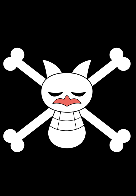 The current one is a very badly drawn version of the previous flag done by Monkey D. Luffy with the characters for the Japanese word for "fox" written on it.