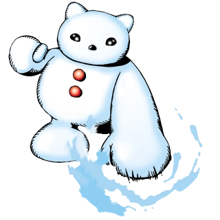 Frigimon is a Champion Level Digimon that resembles a white bear made out of snow. They have two red buttons and their eyes and nose are black.