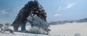 Later that night, the Titan senses a campfire that Lee's group had created and proceeds to burrow underneath it and break through the ground before devouring all of the flames. This gives Lee the idea to distract the creature with Du-Ho's frozen corpse and ignites aviation fuel from Du-Ho's plane so that he, Cate, and May can escape to an approaching Monarch helicopter. The Frost Vark feasts on the flames before pursuing the helicopter, only to give up when the aircraft is far above its reach.