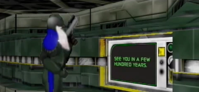 Somehow Gamma found himself inside a computer terminal 1000 years in the past, most likely using Wyoming's time control device. There, he met up with Church and claimed to be the guardian of The Great Weapon. He told Church that The Great Destroyer (who at the time was believed to be Caboose, and then Tex) would destroy the facility and everyone in it in 1,856 years.