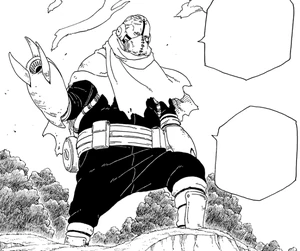 Garō confronted Kawaki and told him that he was after him to bring him back while promising a cruel beatdown in revenge for his destroyed jaw. The two immediately got into a fight with both the Leaf ninjas and Koji and Delta spectating. The two fought for some time with Kawaki able to keep up in his fight against Garō. Eventually, Garō was able to overwhelm Kawaki and mocked him for how weak he had become due to his injuries. However, Kawaki was able to activate his Kama seal which Garō did not expect. Despite Garo's pleas, with his curse seal all over him, Kawaki easily defeated Garō and detonated a powerful amount of energy on Garō's head while mocking him for how the tides had turned.