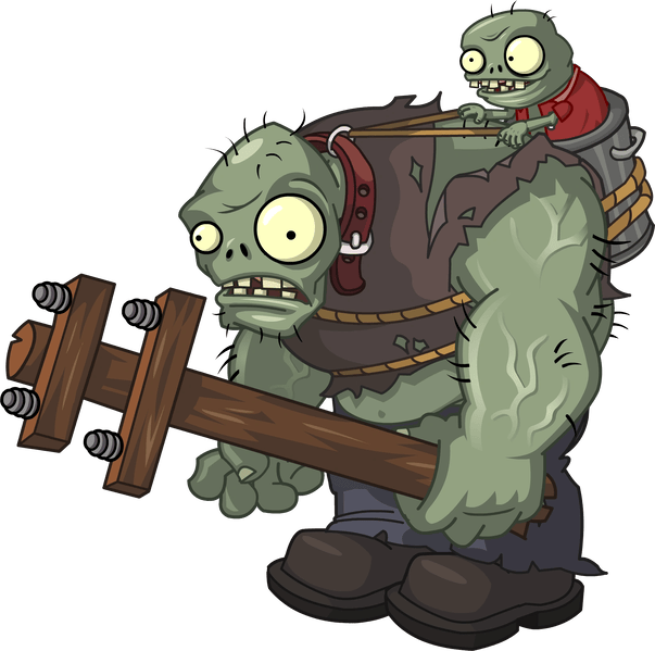 They are powerful variants of zombies who are known for their gigantic size and massive weapons. They serve as common bosses in most of their appearances. Though their most iconic outfit consists of an oversized browncoat with a telephone pole, they come in a variety of clothes and weapons depending on their location. Imps are often saddled on their backs.