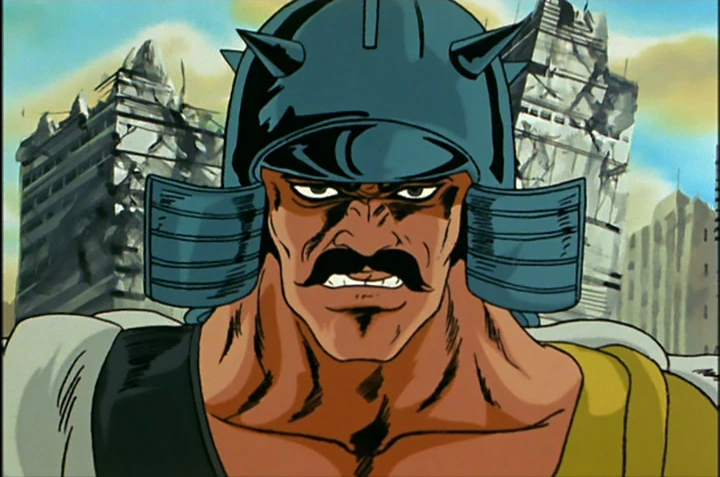 Garou is first seen in Episode 73 alongside his boss at Raoh's castle, ready to attack the Hokuto Shinken conqueror with his sword, but Ryuga stands him down.