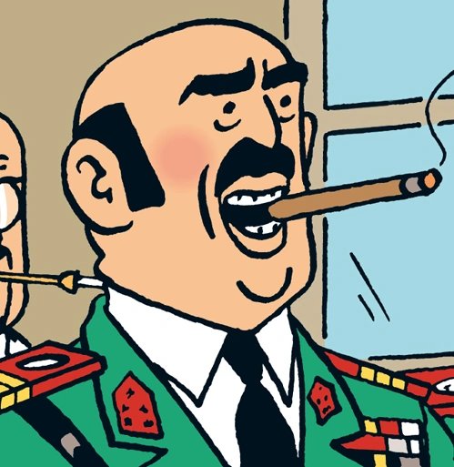 He is the archenemy of Tintin's friend, General Alcazar, as both he and Alcazar are generals in the army and also the presidents of the fictional state of San Theodoros.