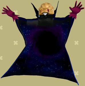 The inner workings of his cloak are an oddity. He can keep objects inside there, and even uses it to transport himself and Klonoa to an alternate dimension (The Wheel of Woe). This implies the cloak is larger on the inside. He can grow to a size far larger than his usual form, as is seen during the battle with him. Once he has done so, he can create small, teleportation orbs that warp anyone whom comes into contact with them. He can summon dark, spherical projectiles to rain down on Klonoa and fling bullet shaped missiles surrounded by energy at him.