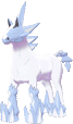 Glastrier resembles a white horse with blank white eyes and ice covering its body, which it wears for armor. Ice covers its legs, tail, and half of its face. Its mane consists of four icicles.
