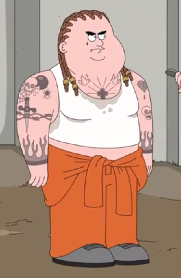 Later in the episode, Hopson was breaking Dusty out of prison and told him that something he can do is beat up the biggest person on campus. Dusty asked Glenda how much she weighed and she said she weighed 3'95. This disappointed Dusty as it meant that he was the biggest guy in prison. Dusty proceeded to beat himself up with his lunch tray until he fell on the ground, while Glenda looked at him in shock.