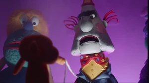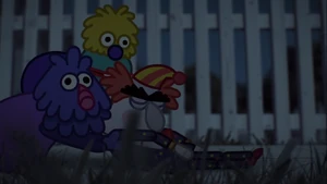 Darwin then starts having fun with the puppets but Gumball catches him and throws them away. Later that night Frank and Howdy escape the garbage can and head for the house while dragging Grady. After Frank and Howdy took control of Darwin, Gumball had no choice but to put Grady on his hand. Grady thanks Gumball, and transports him to a bizarre live-action puppet world.