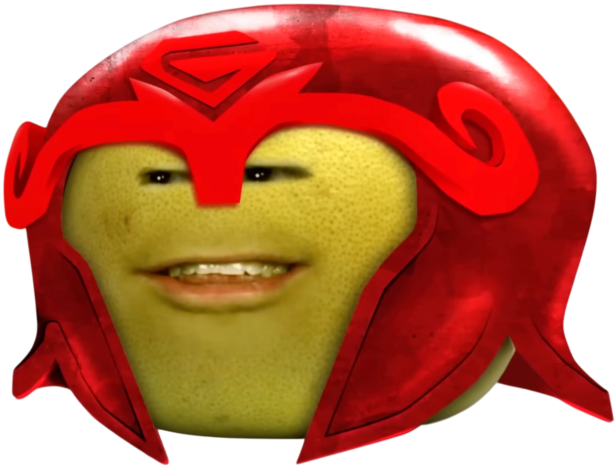 Magne-Fruit is a supervillain form of Grapefruit who appears as the main antagonist of The Fruit-Vengers, which is an episode of the TV show, The High Fructose Adventures of Annoying Orange.