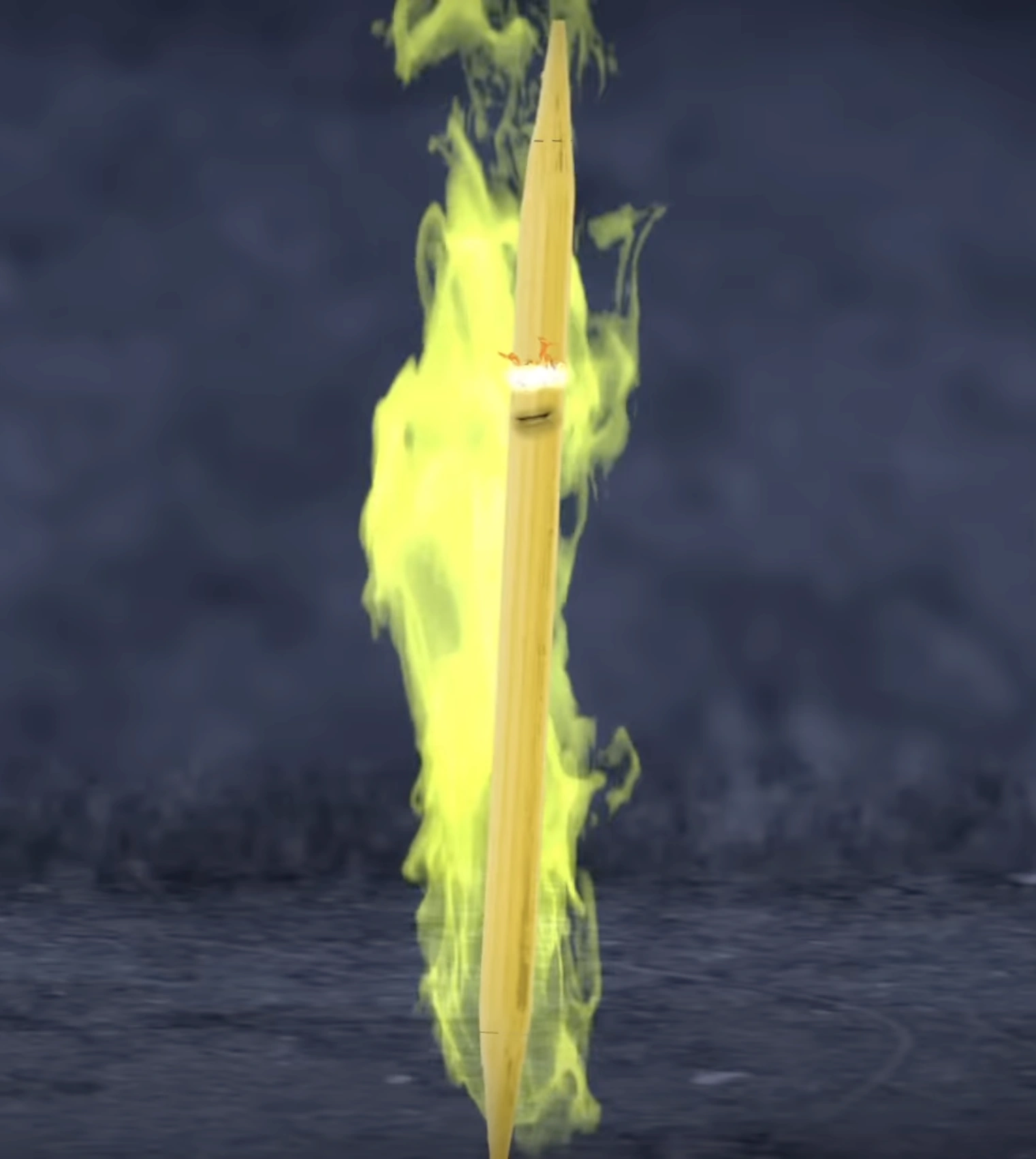 The Toothpick was Grapefruit's exe form when he got poked by a pin from 2019 Shocktober's annoyingorange.exe, courtesy of the EVIL FIRE VIRUS possessing Orange. After Marshmallow placed an anti-virus program into the computer, thus killing the virus and bringing everyone back to normal, Grapefruit still remained stuck as a toothpick, to which Pear, Orange, Midget Apple and Marshmallow mock him and laugh at his pathetic attempts to attack and intimidate them.