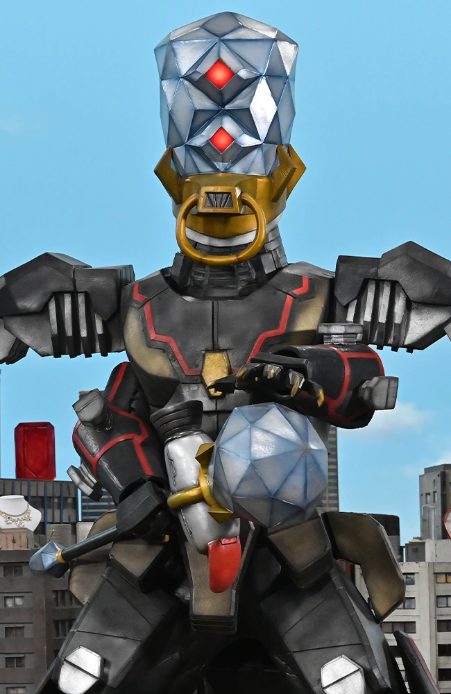 The Great Sapphire World made his first appearance after the destruction of his quickly demised counterpart as he littered the city with different types of jewelry as well as a couple of Kiramai Stones from last year TV series called Mashin Sentai Kiramager prompting Kaito to grow to giant size to battle this robotic dinosaur.