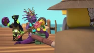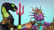When Kalmaar met Nya and Maya, he took them captive and tried to force them to tell the location of the Storm Amulet, but they fled, and he told Glutinous to send the Ripper Sharks after them. They escaped anyway, and when they were commanded to Merlopia with their friends, he and Kalmaar came to the throne room, where Kalmaar started an argument with his father which ended with the former killing the latter and taking power, in which case Kalmaar carried out his plan to find the Storm Amulet, awaken Wojira with it, and destroy the surface world. And he and all the Merlopians followed Kalmaar's commands except for Trimaar's adoptive son, Benthomaar, who learned from his father the truth about Kalmaar.