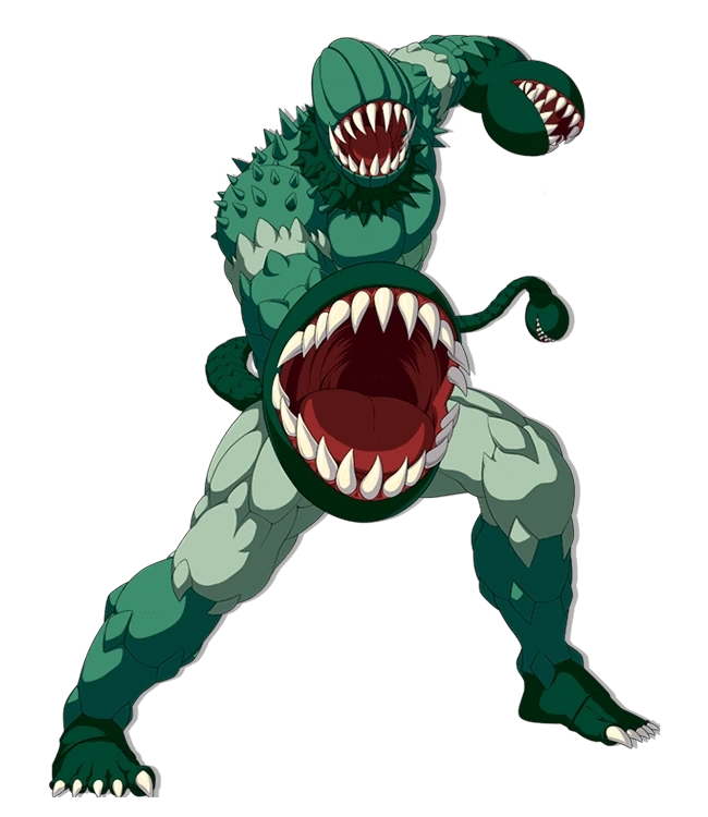On the way to Saitama, Groribas thinks about the way he is going to defeat Saitama, deciding to start by using his Acid Breath ability, thinking that the intruder won't even survive his first attack. He than meets Saitama, telling him that he cannot defeat and proceeds to lunge towards him, but before he proceeds to use his acid breath, Saitama punches him through his head, making it explode.