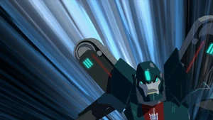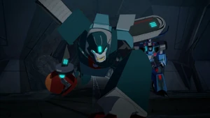 Later when he faced Grimlock, he and Headlock also tricked. But fortunately Fixit came to help, and when Groundpounder and Headlock was defeated, Bee Team took them to the Stasis Pod. Later in Season 2 Steeljaw freed Groundpounder and a few Decepticons in name Bisk, Quillfire, Clampdown, Springload, Overload and Thunderhoof, and delivered them to Glowstrike and Saberhorn.