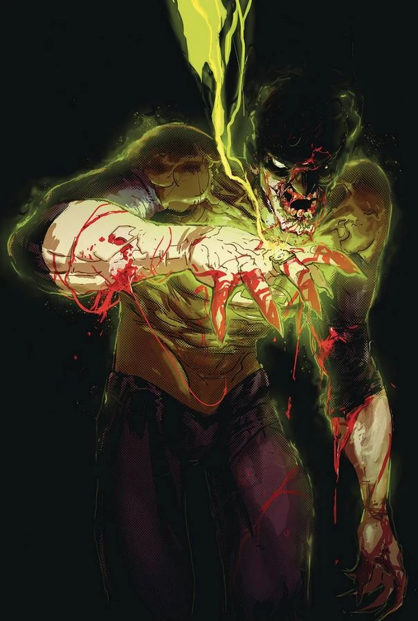 Exploding in a violent rage, Hal Joran stood before his stunned former friends as a monstrous mockery of his Green Lantern alter-ego and viciously attacked them with his light constructs, trying to kill them despite the ring itself fighting his commands.