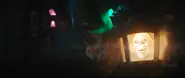 Crump appearing through Madame Leota's crystal ball before he imprisons her in it.