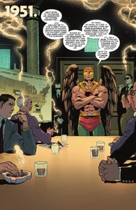Hawkman was summoned before the Un-American Activities Committee, where Carter Hall made the bold decision to unmask voluntarily. He went a step further by naming several of his fellow heroes whom he suspected of being Communist infiltrators. This act marked a significant shift i as he became an agent for the government, tasked with eliminating anyone deemed a threat to the established order.
