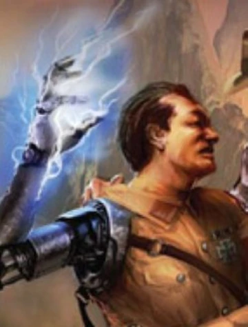 - Helmut von Mephisto's mechanical arm was conceived by the late J.W. Rinzler as a reference to the earliest concept arts of Major Arnold Ernst Toht from Raiders of the Lost Ark. In those concepts by the late Ron Cobb, Toht was meant to be a Nazi cyborg, but George Lucas scrapped the idea for being "too unrealistic" for the film's 1936 setting. Chris Columbus would later try to use the idea for Helmut Gutterbuhg, one of the villains from Indiana Jones and the Monkey King, an early version of Indiana Jones and the Last Crusade. Due to his work in the making-of book The Complete Making of Indiana Jones, Rinzler opted to use the idea for his book and succeeded.