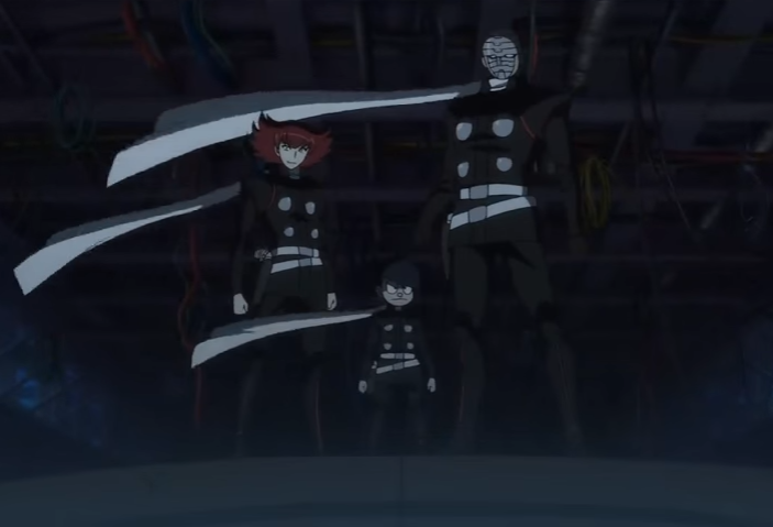High-Teen Numbers 0014, 0016 and 0017 were first seen following Cyborgs 002, 004 and 008. Eventually, the three Proto-Cyborgs to notice of their pursuers and chased after them. 002 correctly guessed that they were assassins sent by Black Ghost. 0014 then introduced himself and his two comrades and brags that the Mythos Cyborgs are "out of date antiques" compared to them.