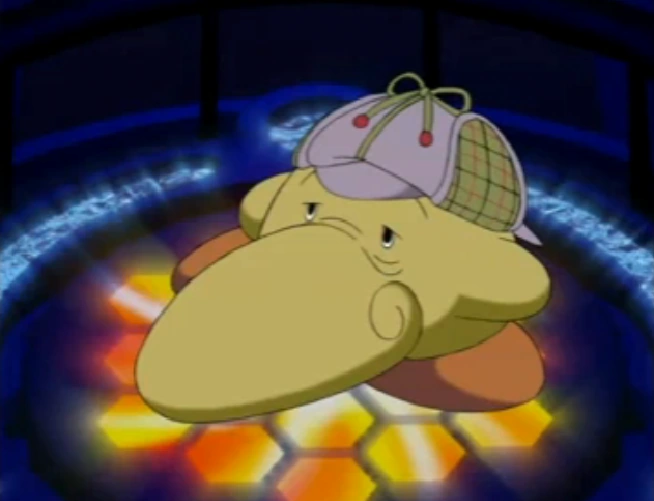 Honker Stomper looks like a walking gray nose who wears a purple detective cap. He has sunken in eyes.