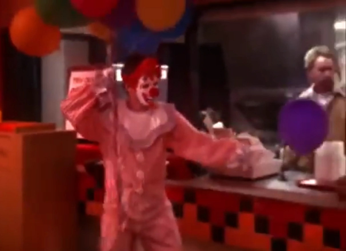 The two detectives are about to leave, but Crockers notices a picture of the original Horny the Clown framed on Jack's desk. When he wonders aloud who played as the original Horny, Jack tells him that he was played by his son, Archie. When Crockers asks if Archie is still playing as Horny, Jack solemnly tells him that he died. The two detectives leave and Jack goes onto his computer, showing footage from one of the Blanca Carne Hella Burger restaurants, where Horny is seen exiting one of the restaurants and glaring at the camera.