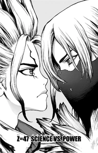 During the voyage to America, Senku revives Hyoga to train those in weapons while having Tsukasa monitor him. Hyoga agrees to join but on two conditions: reviving Mozu and Homura to take part in training. Hyoga and along with Tsukasa and the team helps the Kingdom of Science as they attempt to dig a tunnel to Dr. Xeno's castle.