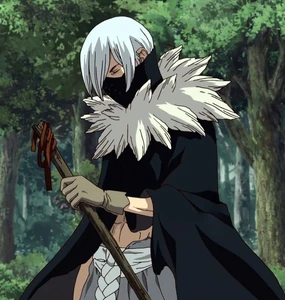 A mysterious, skilled warrior, he was depetrified by Tsukasa Shishio to help build and establish his empire. He worked alongside Homura Momiji in spying on Ishigami Village and leading attacks against them. For awhile, Hyoga acted as Tsukasa's spear and carried out his tasks, but in truth, Hyoga was secretly plotting to turn against Tsukasa and instead establish his own world; a world where the strong stand above the weak.