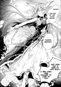 She is the evil personality of Kasen Ibaraki who was sealed within her severed arm after the arm was cut by the youkai blade Oni-Cutter (鬼切丸 Onikirimaru). Since then she has been waiting to be fused with Kasen so she could return to her true form.