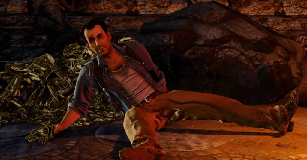 Dante about to succumb to his wounds after his battle with Drake.