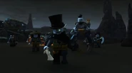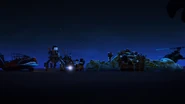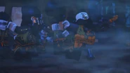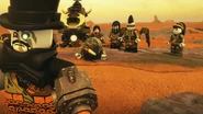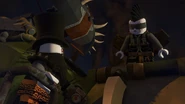 After Iron Baron and Wu departed to Firstbourne's nest, the Hunters went on arguing whether to trust the ninja or not. One side was with Jet Jack and Muzzle led the other. Jet Jack tried to argue while reminding he was Baron's Number Two, thus she was in charge when their leader wasn't around. However, Muzzle argued back (despite his gibberish) much to her annoyance. Daddy No Legs defended Muzzle, saying that the latter was saying what the Hunters in his side are thinking, with an annoyed Jet Jack supposing that Daddy No Legs thinks he should be in charge.