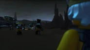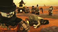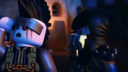 When Iron Baron asked the captured ninja if they were more of their kind (mistankely believing they were Oni). After Zane said that they were alone, Jet Jack stepped forward and showed diapers she found, asking, if the ninja were indeed alone, then who owned the diapers she held. After the ninja lied they were Jay's, most Hunters laughed, with Jet Jack showing the diapers to the public. She witnessed the ninja being taken to the Pit, but wasn't present when the ninja fought the Earth Dragon, Slab, and showed their Elemental powers.
