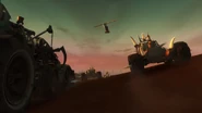 Jet Jack was among the Hunters who joined Iron Baron in his hunt for the ninja and discovered Daddy No Legs and Muzzle (who were sent before them) tied in the desert. After Iron Baron learned from them that Heavy Metal (actually a female Hunter named Faith) sided with the ninja, he enraged. Jet Jack proposed to catch them with her own group of Hunters, but Baron ignored her out of rage. Chew Toy search for a smell and, thanks to a blanket Baron lifted, managed to know the direction the ninja went (with six hours ahead of the Hunters). Iron Baron then ordered Jet Jack to hunt them. As the Hunters in her group readied their speeders, Jet Jack adviced that she's the only one who will lay hands on Heavy Metal.