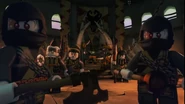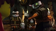 When the ninja tried to free themselves, Jet Jack caught them in the act and asked what they were doing, with Jay trying to lie that they were doing nothing. Jet Jack then raised her weapon, causing Jay to panic due to his belief that he, the ninja and Faith are going to be eaten by the Hunters. Jet Jack, however, breaks their chain and sets them free, revealing that, in their argument, they decided to side with the ninja since Iron Baron revealed his true nature and feared the worst should the evil Hunter leader wear the Dragon Armor. They decided to go and stop Baron, but realized it was too late since a bridge the leader and Wu once crossed already collapsed.