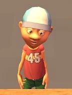 Jimmy is a young kid with fair skin and a skinny build. For his attire, he wears a blue cap on his head with a red shirt that says "45" on it in white color and green cargo pants.