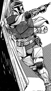 In what appeared to be another normal mission, Jodo and other Specops agents were given the command of Invading a place full of mercenaries and capture or kill them. In the middle of the mission, Jodo found a mandalorian In silver beskar armor, Who was named Feskitt Bobb, But Jodo thought this was the legendary Boba Fett, So because of this, Feskitt and Kast got In a gun duel, Where Jodo end up being the winner, After killing the mandalorian with a quick shot, At the beginning, Jodo was proud of his victory, But he end up getting dissapointed when he found out that the man who he killed was not Boba Fett.