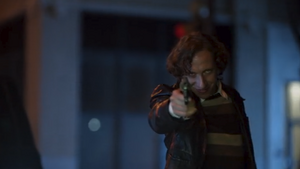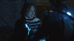 However, instead of being grateful for the information, Tobias grabs Joey by the neck and asks why he did not finish the job. Toledo claims that Black Lightning destroyed his gun and was all alone, so he fled instead and contacted their man inside the police department. Whale then tells him to ensure a crew is placed near lockup in case Black Lightning gets captured. Joey and Syonide later drive Whale to an appointment with his doctor.