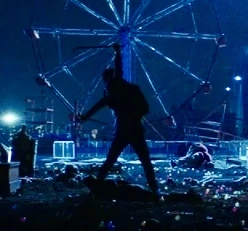 Sometime later in the real world, the Joker escapes from Arkham Asylum and went into hiding at an abandoned amusement park at Gotham Harbor, right after murdering several cops.